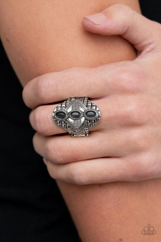 STARRY SKYSCRAPERS - WHITE RHINESTONE CITY SKYLINE SILVER HINGED BRACELET - EMPIRE DIAMOND EXCLUSIVE - PAPARAZZI